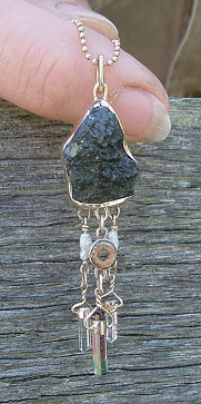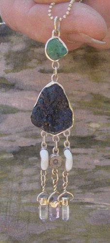 Heaven and Earth w/ Quartz Wand & Emerald in Fine Silver