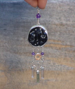 Amethyst Medicine Shield in Fine Silver