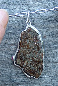 Chondrite Meteorite Slice with Ruby in Fine Silver
