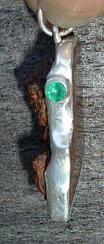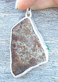 Chondrite Meteorite with Emerald in Fine Silver