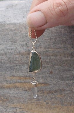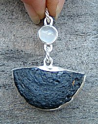 African Dark Crystal and Moonstone in Fine Silver