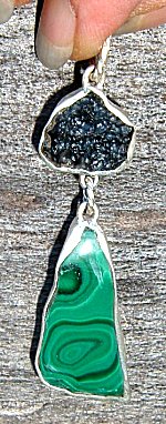 African Dark Crystal and Malachite in Fine Silver
