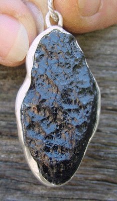 Tektite - African Dark Crystal in Fine Silver