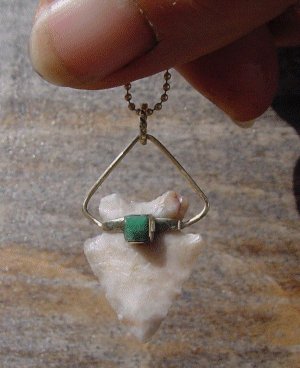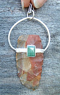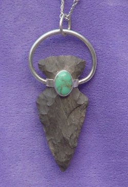 Gray Flint Spearhead w/ Chinese Tourquoise in Sterling Silver