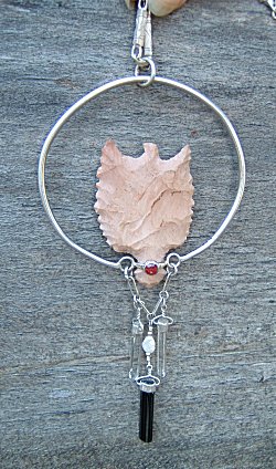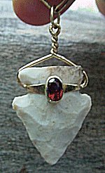 White Flint Arrowhead w/ Garnet in 14K Gold
