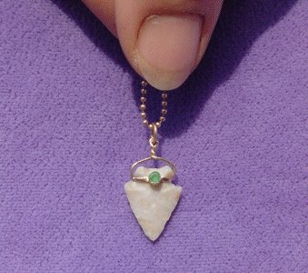 Small White Flint Birdpoint w/ Emerald in 14K Gold