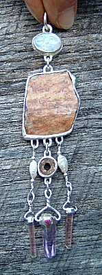 Cherokee Pottery Shard w/ Purple Sapphire in Fine Silver