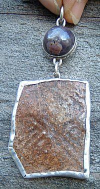 Cherokee Pottery Shard w/ Purple Sapphire in Fine Silver
